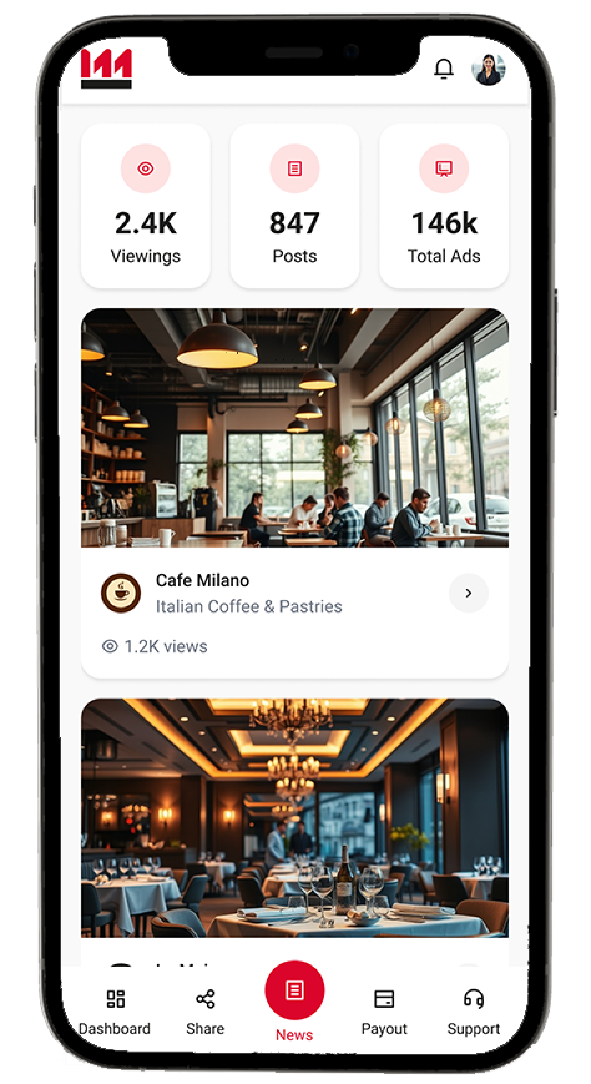 "The ads are really discreet and high quality! I watch my shows normally and €120 per month comes in automatically. Plus, I've discovered several great local restaurants thanks to the local ads."