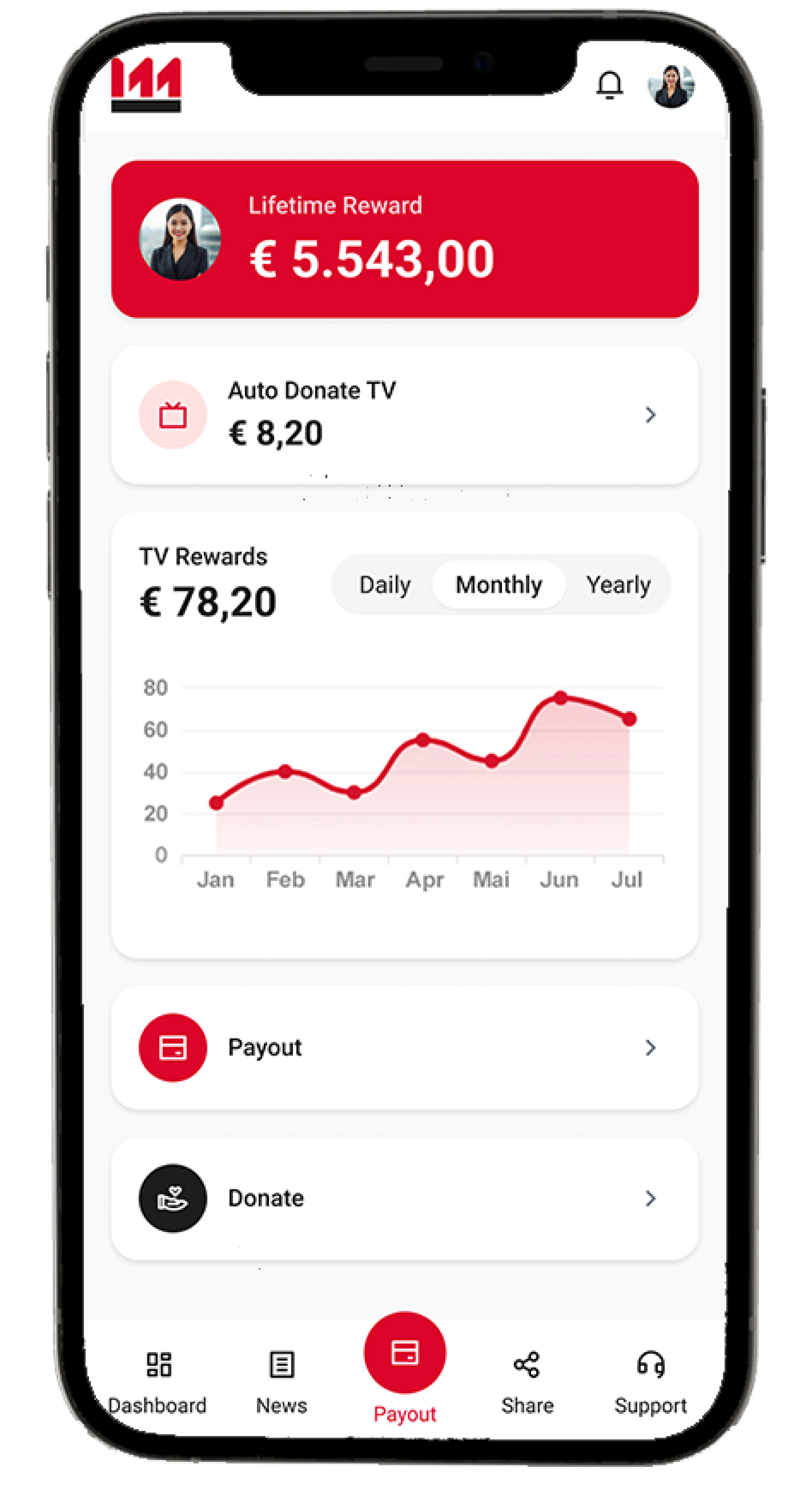Every time you watch TV and an LBanner appears, a donation is automatically made to a foundation. You can track the total contributions in the Auto Donate TV section.