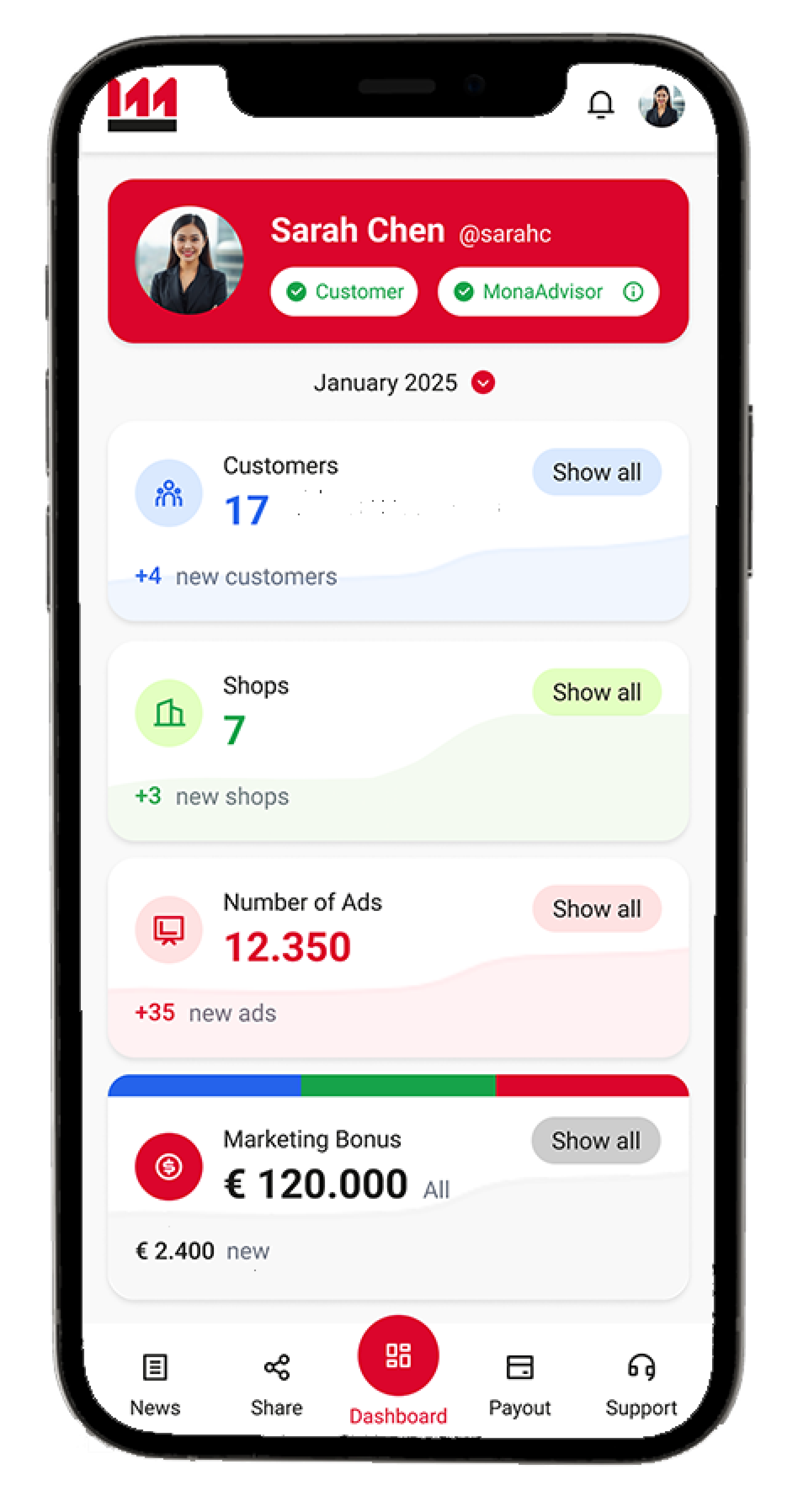 "€2300/month in passive income with my 12 screens! The ads display while my members work out and fit well with the sports environment. Quick setup, regular income."
